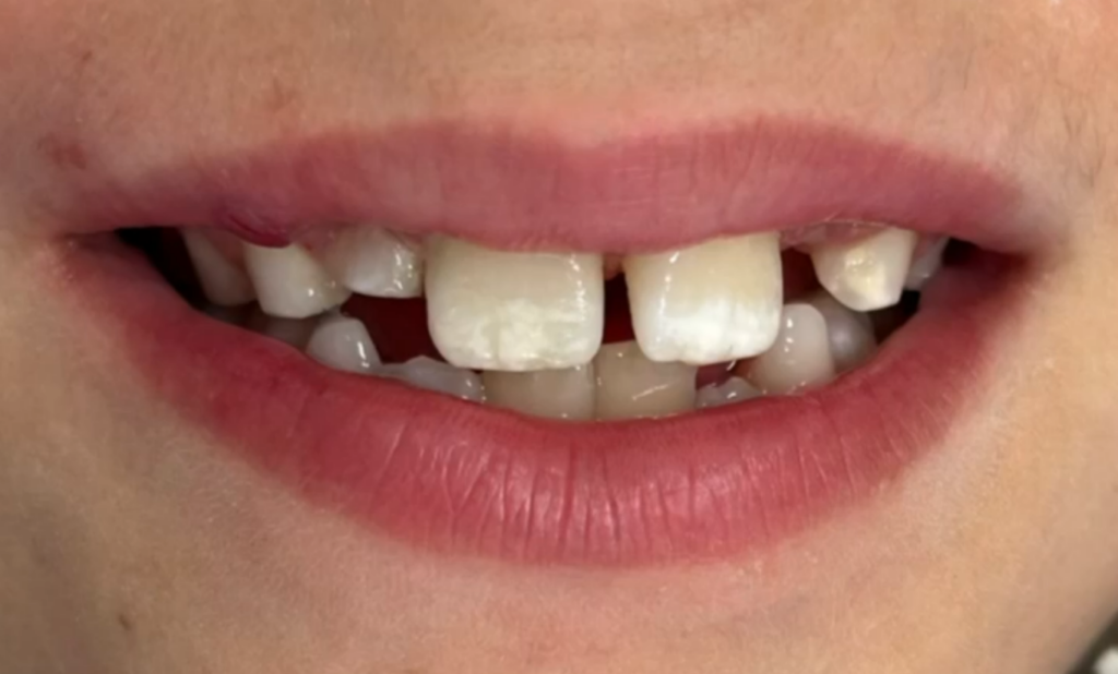 - Evaluación y planificación del tratamiento: El equipo examinó el diente fracturado y el fragmento, y determinó que la re-adhesión era un tratamiento viable. Tuvo en cuenta la extensión de la fractura y el estado del fragmento.