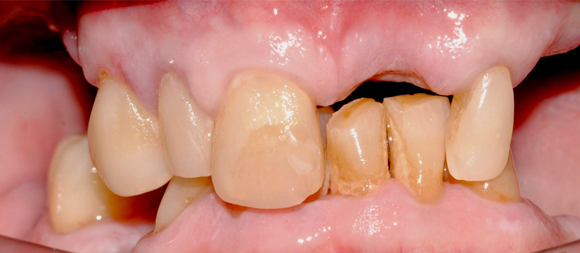 Previamente fueron necesarios tratamiento periodontal para mejorar la calidad de las encías, cirugía de alargamientos coronarios e injertos de tejido conectivo.