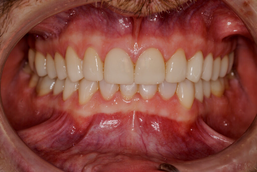 En las fotos del después, se observa cómo el paciente ha recuperado la altura original de sus dientes, devolviendo no solo la estética perdida, sino también la funcionalidad adecuada. La precisión y el cuidado en cada etapa del tratamiento aseguran una solución duradera y confortable.