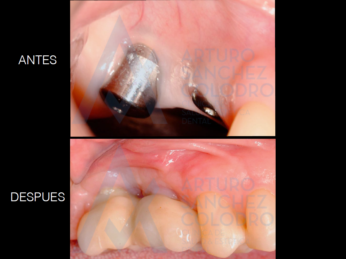 Compartimos con vosotros un caso en el que quedaban a la vista unos implantes de titanio (16 y 17), tratado por el Dr. Arturo Sánchez Colodro.