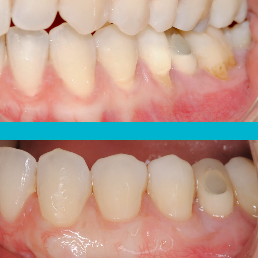 Uno de nuestros casos emblemáticos involucró a un paciente con recesión gingival severa, que no solo afectaba la estética de su sonrisa, sino también su salud oral. Utilizando nuestro enfoque especializado en cirugía plástica periodontal con técnicas SLOW, pudimos diseñar un plan de tratamiento personalizado para abordar sus necesidades específicas.